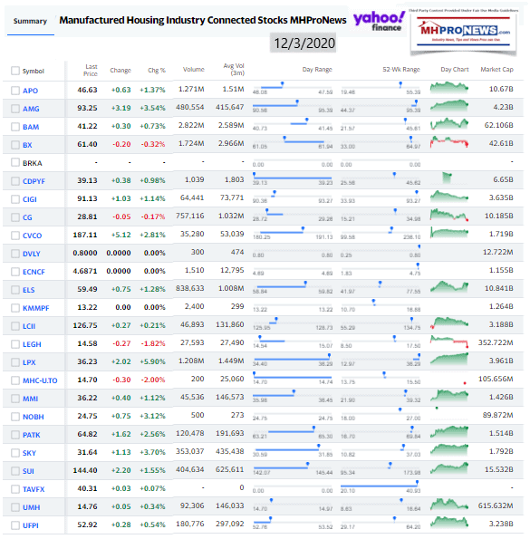 Manufactured Housing Industry Investments Connected Closing Equities Tickers