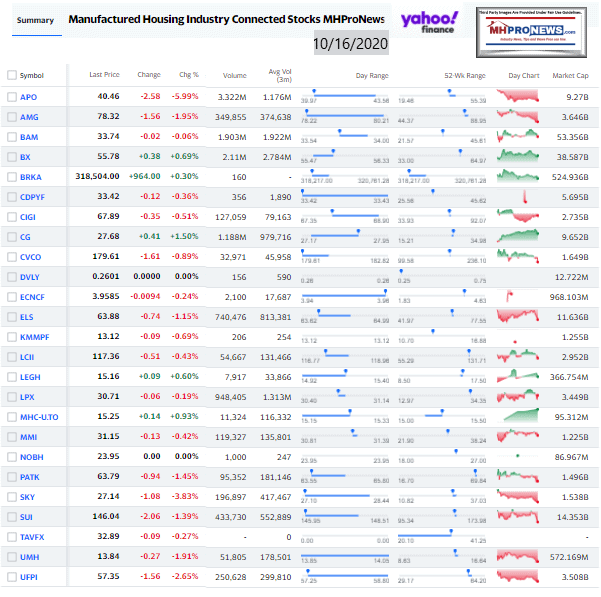 Manufactured Housing Industry Investments Connected Closing Equities Tickers