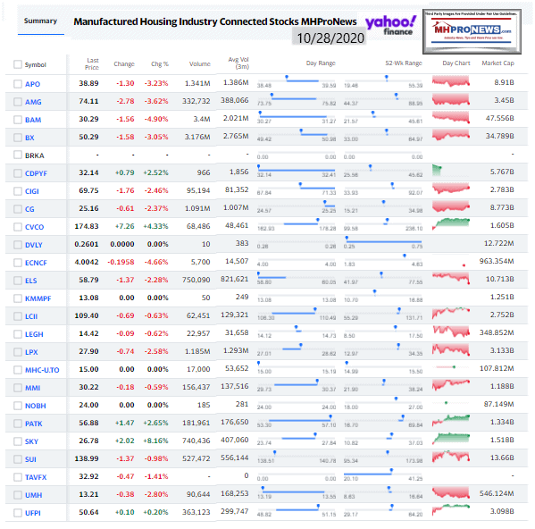 Manufactured Housing Industry Investments Connected Closing Equities Tickers