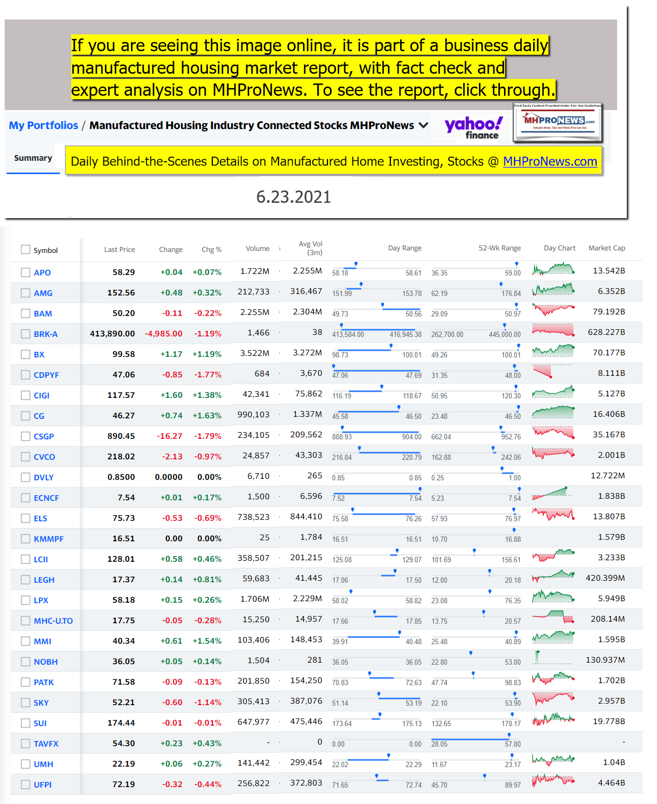 Disclosure. MHProNews holds no positions in the stocks in this report.