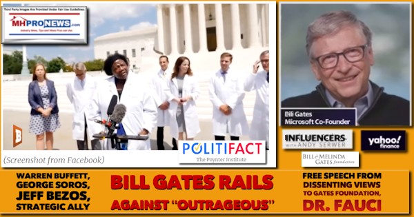 As a point of clarity, MHProNews isn’t specifically advocating for or against a treatment or strategy per se. Rather, reports like this article are to illustrate that discussion in the public square is being shut down, despite arguably credible voices, even if they have had some fringe thinking or association in their history. The principle of separating wheat from the chaff is precisely that even flawed people or organizations can produce good information or useful efforts.  That noted, PolitiFact, says Influence Watch has a “left leaning bias” is funded by the Democracy Fund and has ties to other left-leaning groups, such as the Google Foundation. The Democracy Fund, says Influence Watch – which routinely cites its sources meticulously – is in turn supported by “George Soros’s Open Society Foundations and the Ford Foundation.”