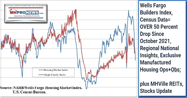 “The [National Association of Home Builders] NAHB/Wells Fargo Housing Market Index (HMI) is based on a monthly survey of NAHB members designed to take the pulse of the single-family housing market. The survey asks respondents to rate market conditions for the sale of new homes at the present time and in the next six months as well as the traffic of prospective buyers of new homes,” said the National Association of Home Builders (NAHB) on 10.18.2022. The obstacles and opportunities (Ops+Obs) these and similar inputs have on manufactured homes will be examined further into this report and analysis