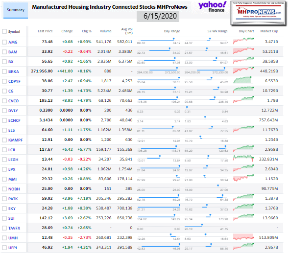 Manufactured Housing Industry Investments Connected Closing Equities Tickers