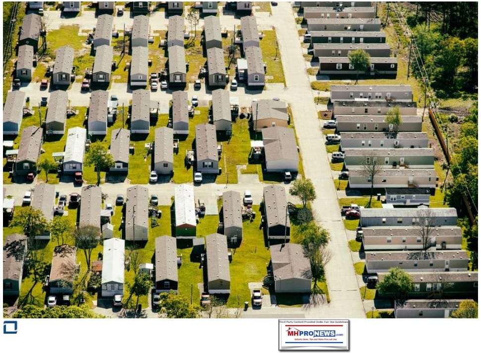 Stay tuned for more of what is ‘behind the curtains’ as well as what is obvious and in your face reports. It is all here, at the runaway largest and most-read source for authentic manufactured home “Industry News, Tips, and Views Pros Can Use” © where “We Provide, You Decide.” © ## (Affordable housing, manufactured homes, reports, fact-checks, analysis, and commentary. Third-party images or content are provided under fair use guidelines for media.) (See Related Reports, further below. Text/image boxes often are hot-linked to other reports that can be access by clicking on them.)
