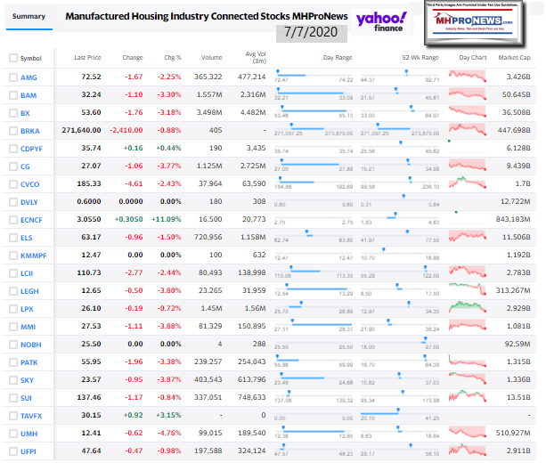 Manufactured Housing Industry Investments Connected Closing Equities Tickers