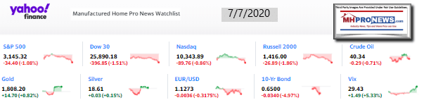That featured focus is found beyond the left-right media bullet headline snapshot for tonight, this evening’s quotable quotes, and 2 of the 3 market summary graphics at the closing bell. The manufactured housing connected stocks graphic at the close today are found beyond the featured focus and related report links.