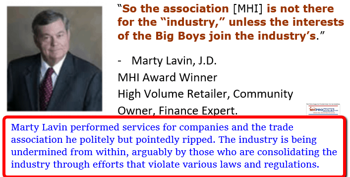 Marguerite Nader’s comments are not necessarily sinister, but they underscore an observation advanced by MHProNews for some time. Specifically, MHI ‘networking events’ are designed in part to create a ‘social attraction’ and ‘social glue’ that yields business acquisitions and other opportunities. There may well be an entirely valid and mutually beneficial exchange of ideas in what Nader described or what an MHI event accomplishes.