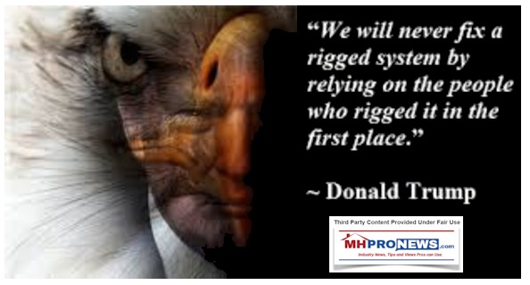 They are prima facie and unambiguous evidence that the ‘rigged system’ in our nation exists in manufactured housing too. That rigged system, as President Trump once said, will not be fixed by the ones who rigged the system in the first place.